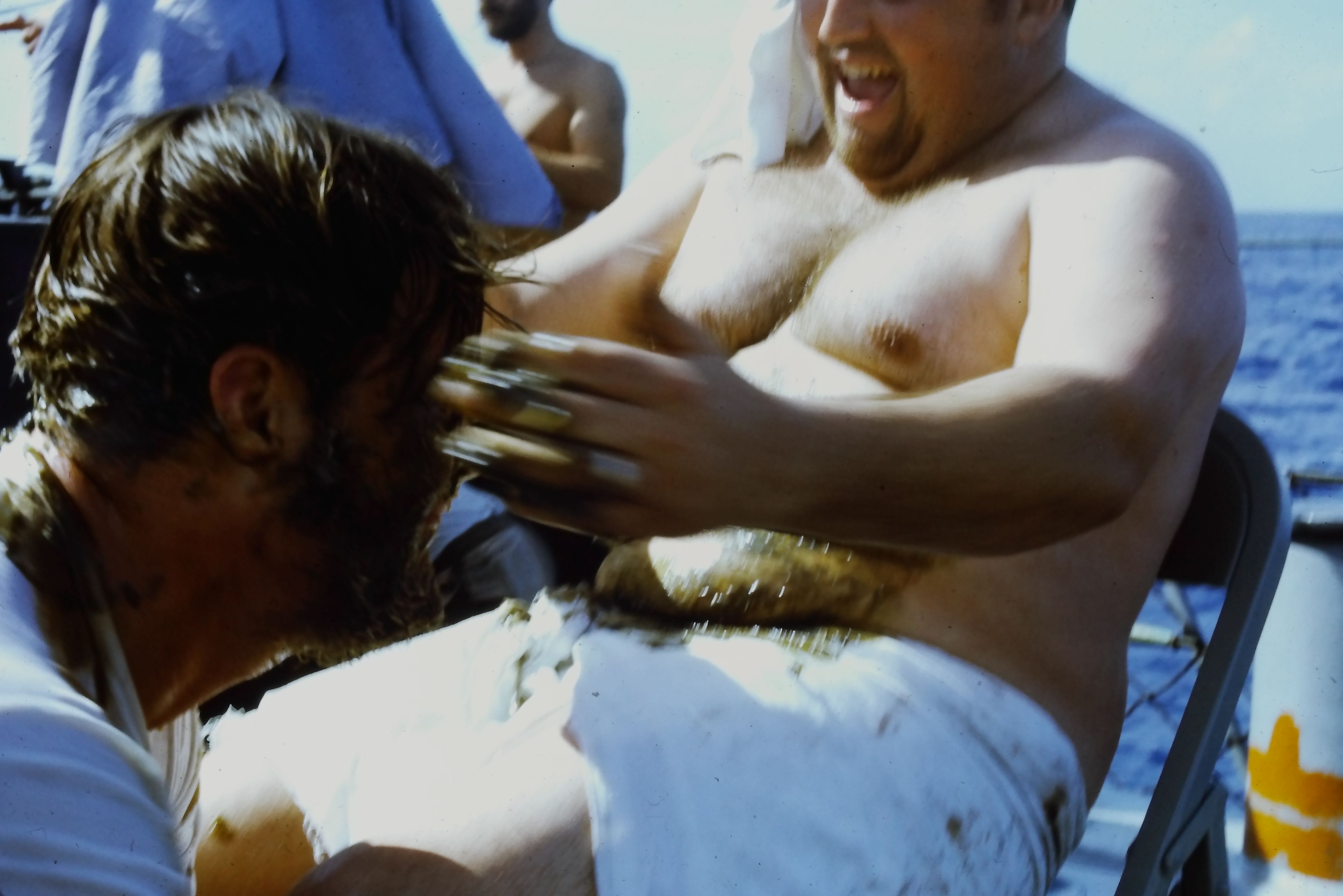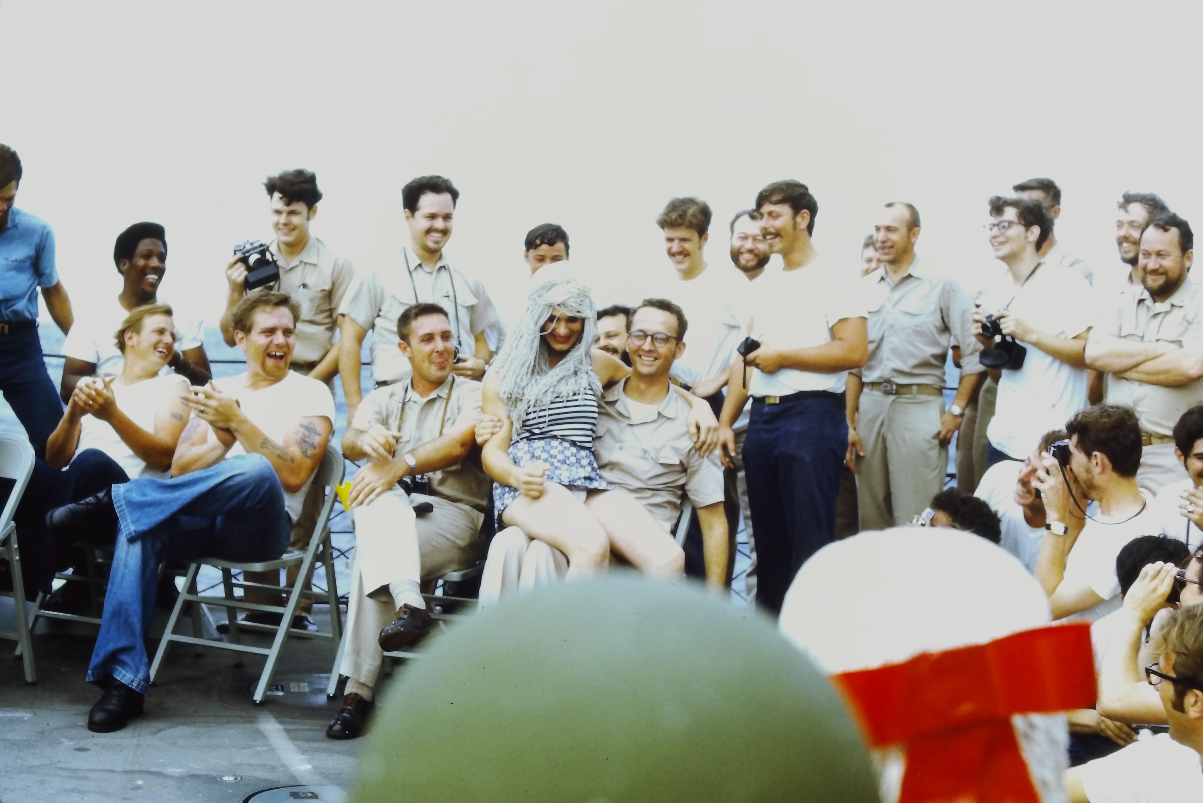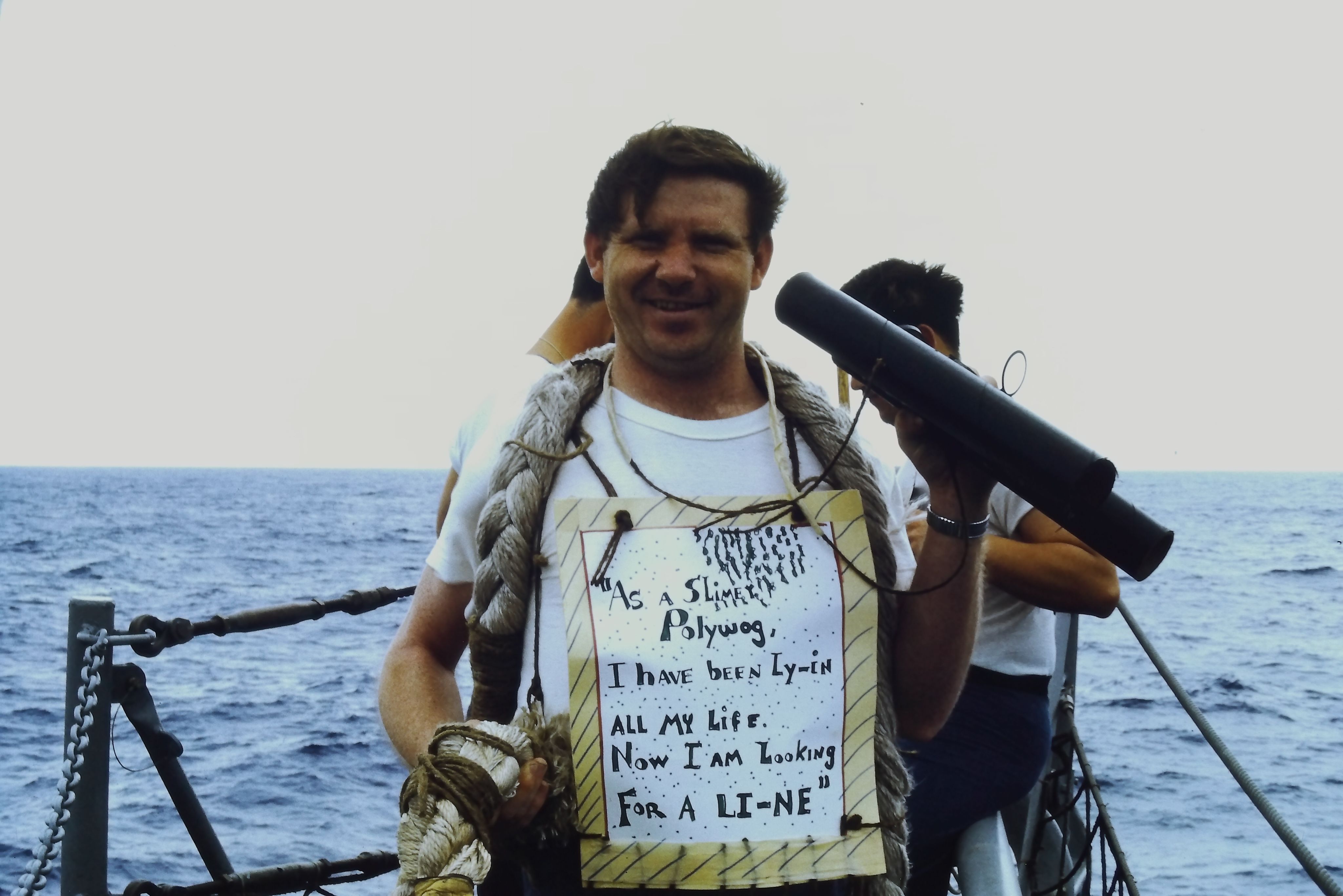 “Today we initiated 195 lowly, crawling Pollywogs into the exalted society of Shellbacks. Davey Jones came aboard [sic] over the bow last night and asked us to prepare. We did, and today he escorted Neptunus Rex, with his whole court, aboard for the initiation.”