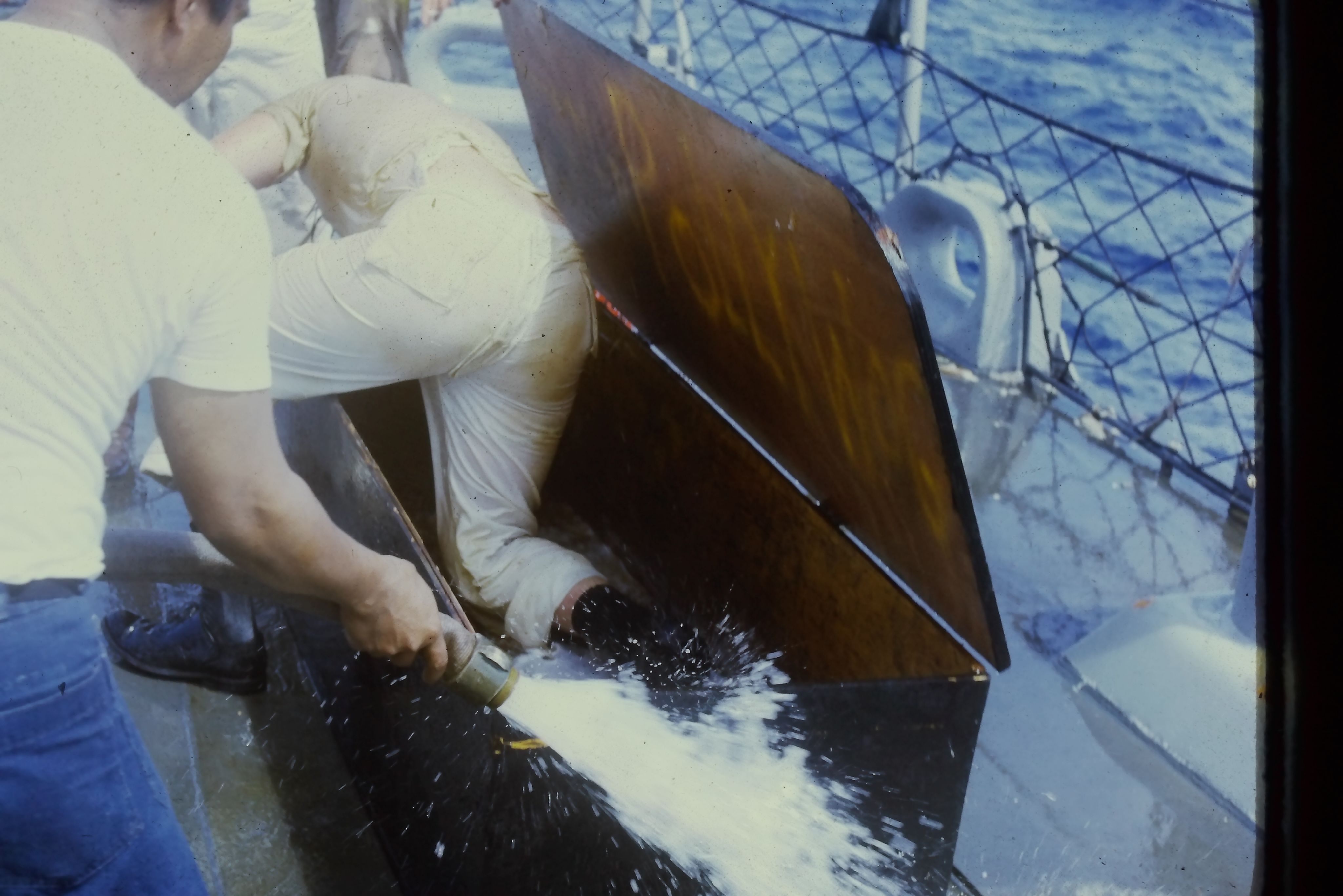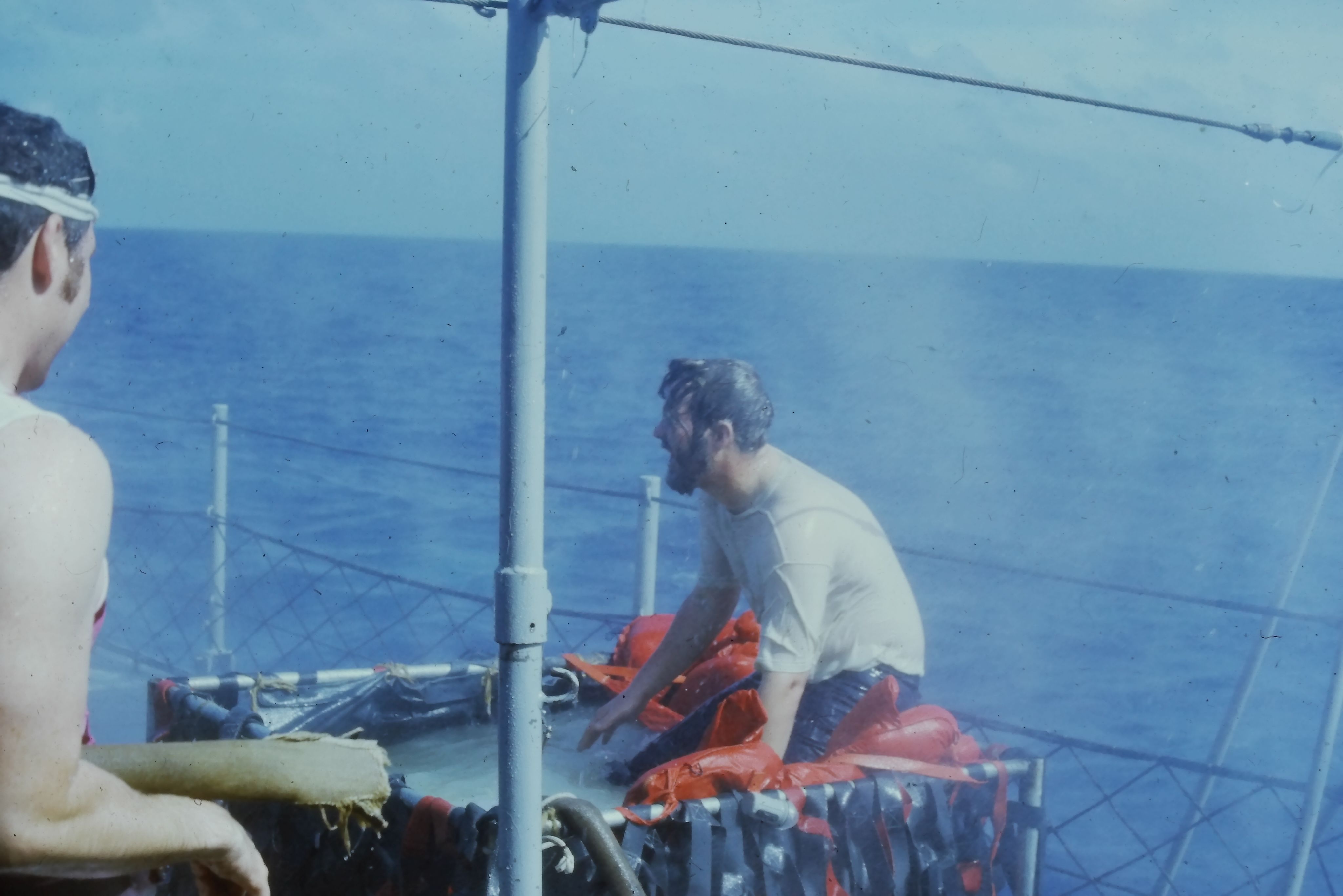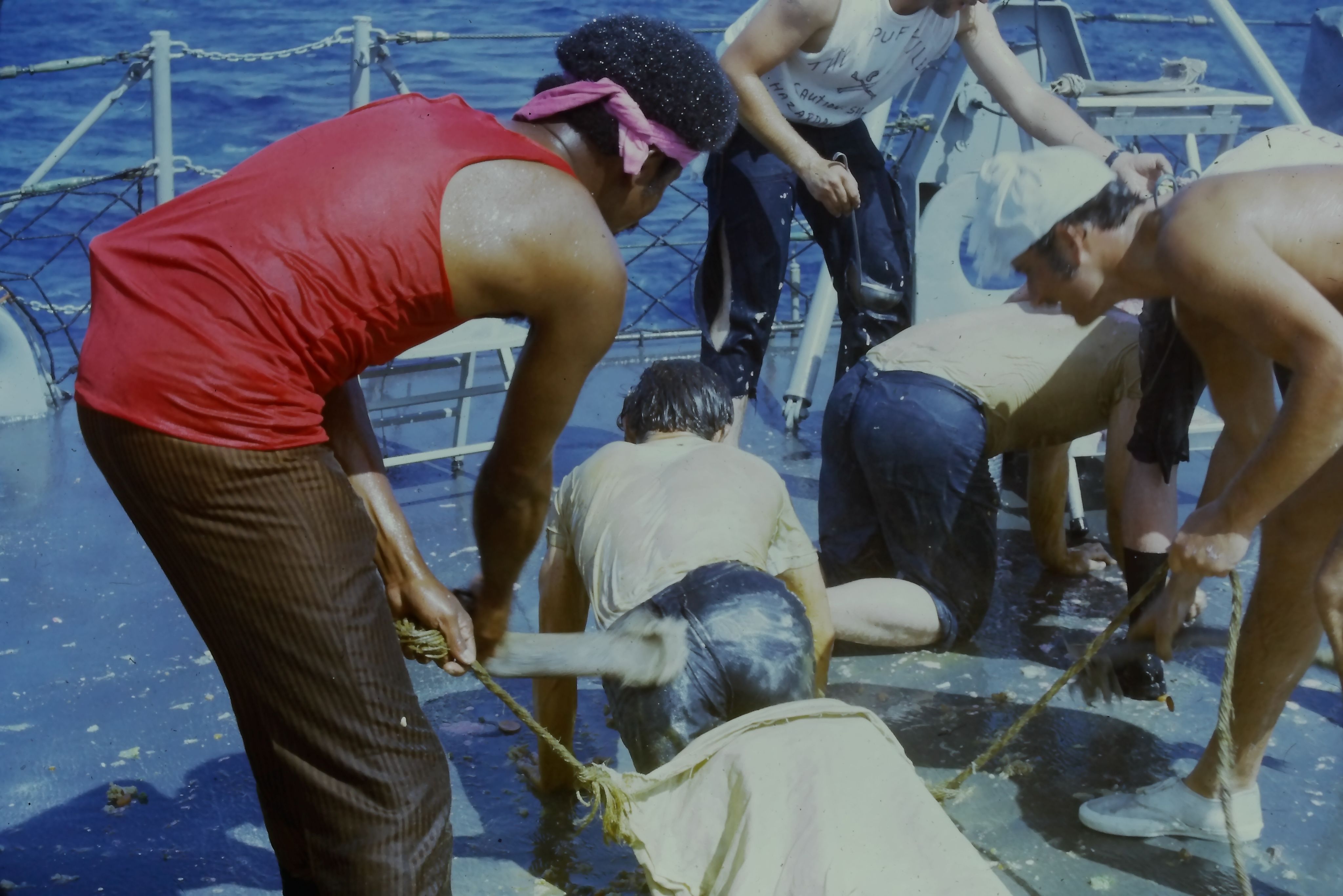 “Today we initiated 195 lowly, crawling Pollywogs into the exalted society of Shellbacks. Davey Jones came aboard [sic] over the bow last night and asked us to prepare. We did, and today he escorted Neptunus Rex, with his whole court, aboard for the initiation.”
