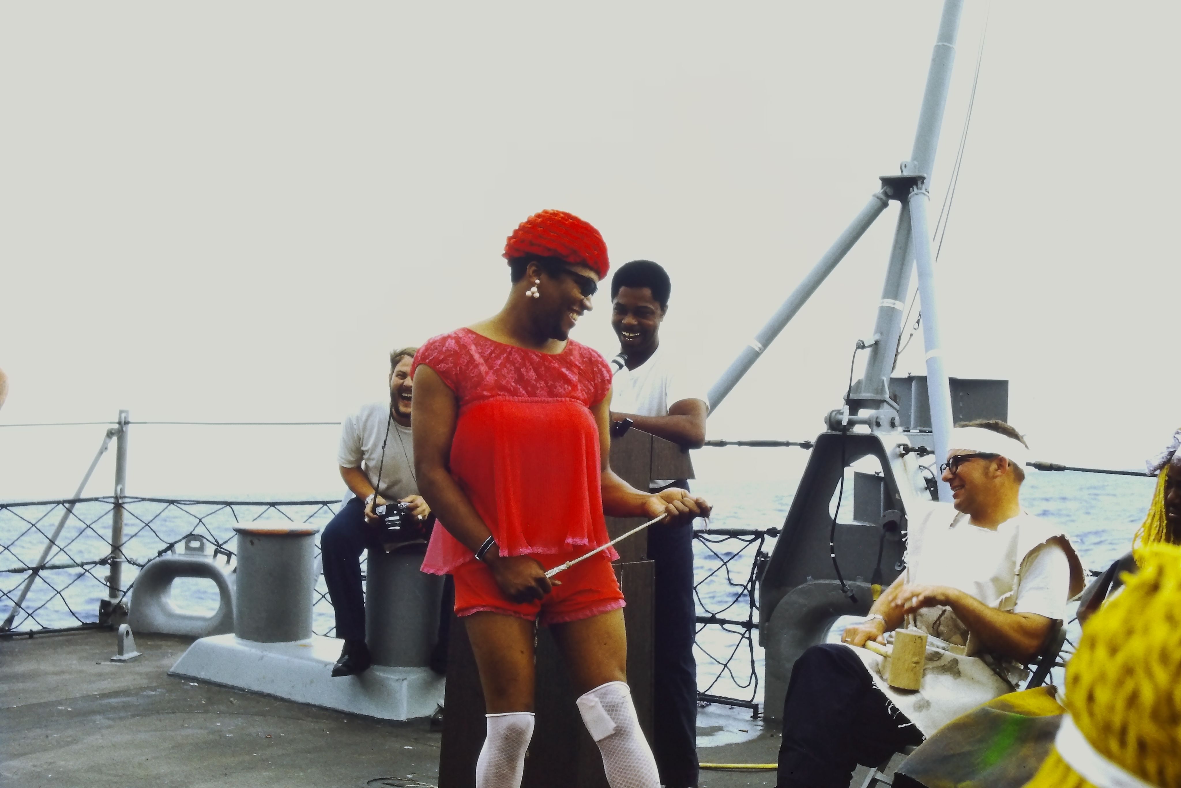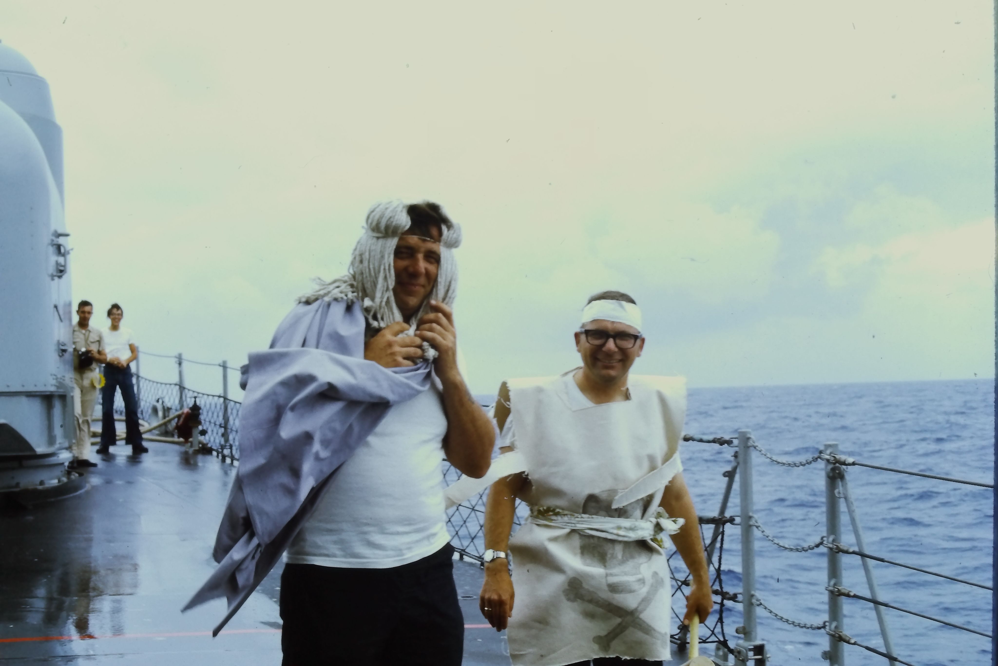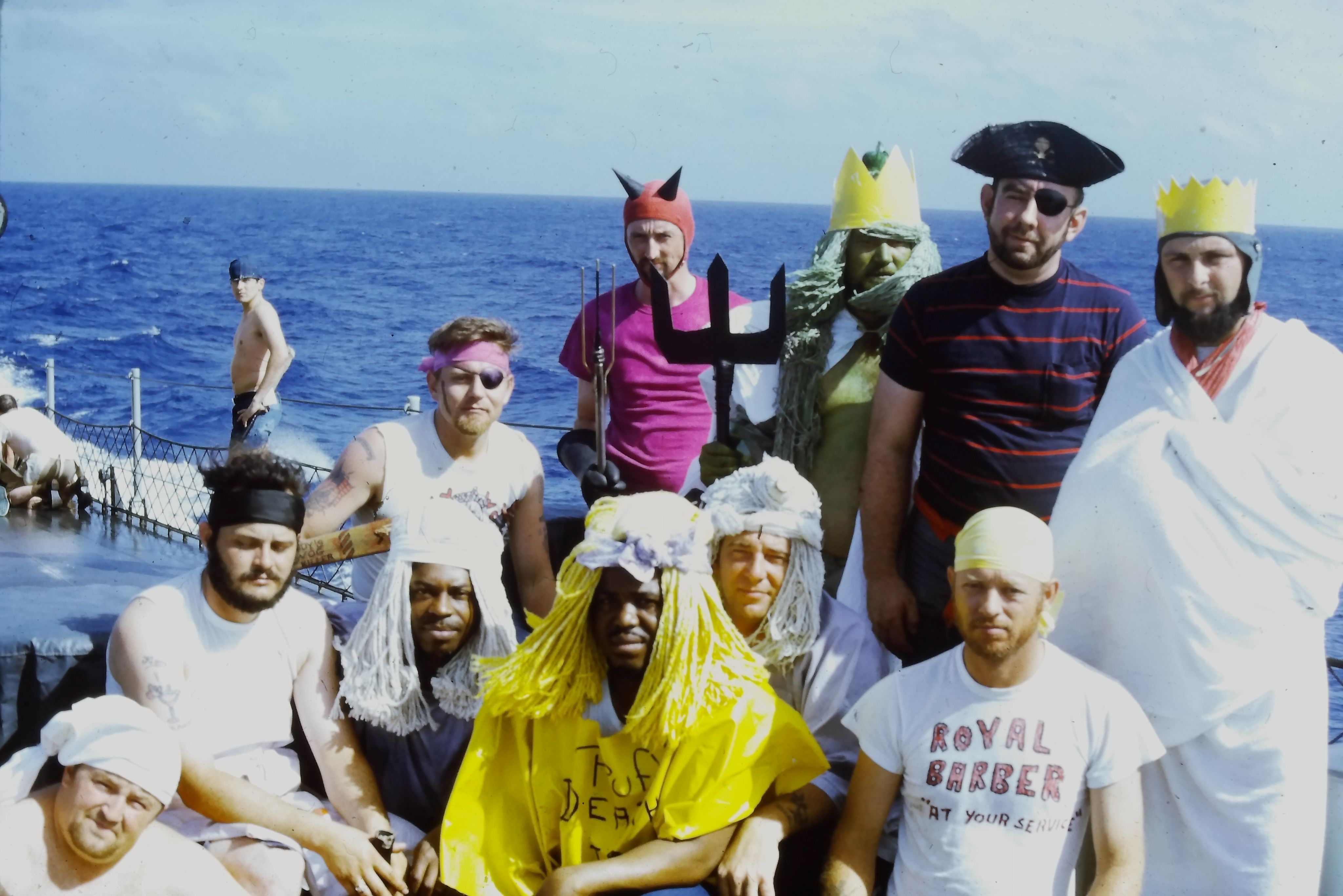 The Shellbacks play the part of King Neptune and his court. All Pollywogs must sacrifice and suffer in a trial by ordeal.